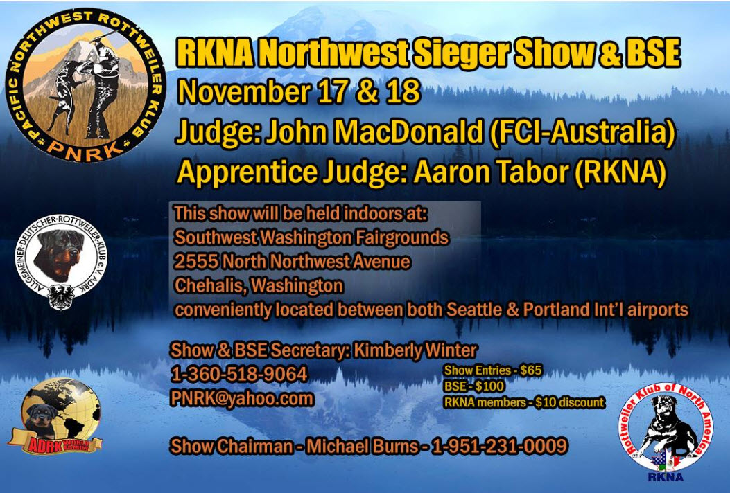 RKNA Northwest Sieger Show and BSE hosted by Pacific Northwest Rottweiler Klub.